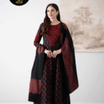 BLACK-RED 3PC UNSTITCHED ELITE
